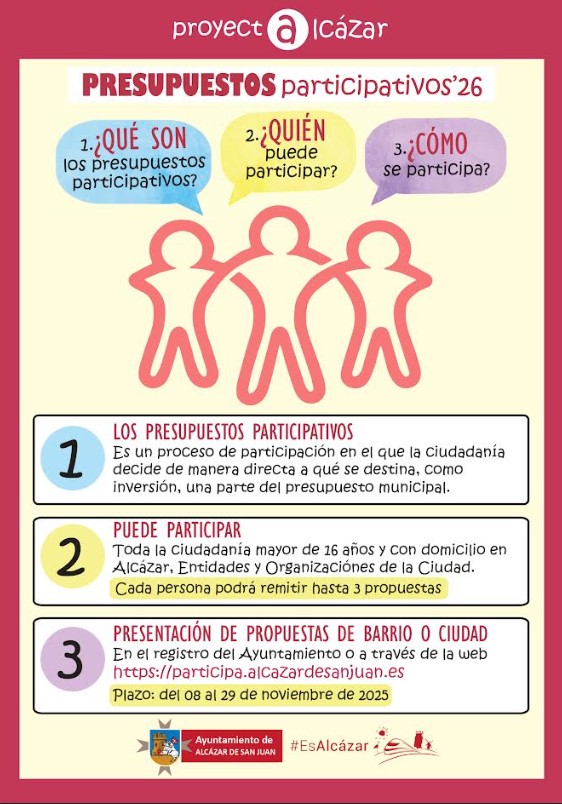 El Ayuntamiento de Alcázar de San Juan, se compromete con el fomento de la participación ciudadana aprobando el Reglamento municipal de Participación Ciudadana que pueden consultar haciendo clic aquí. También puede consultar a qué distrito (barrio) pertenece su calle, pulsando aquí.